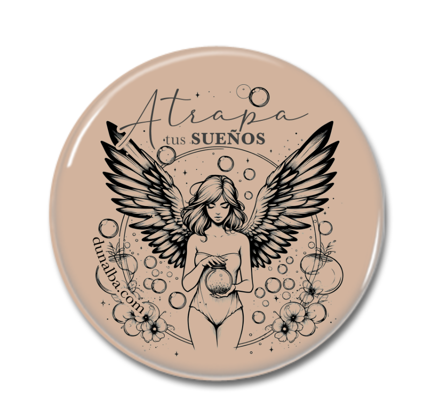 La segunda chapa llegará con Truco o Trato y su mensaje es “Atrapa tus sueños”. Representa mi esfuerzo por no dejar escapar mis sueños después de una mala época en la que pensé en rendirme y abandonar la escritura.